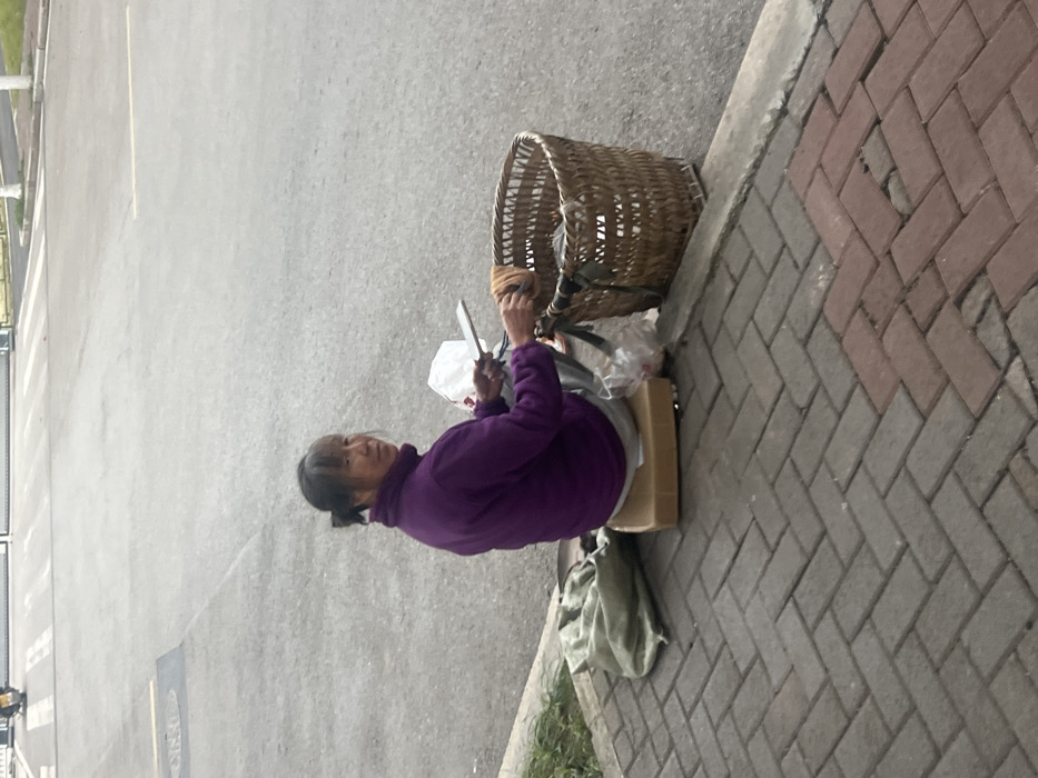 - "In Jiangjin, China, an adult female is seated on a sidewalk adjacent to an asphalt road" by FM-AH4jy2, licensed under CC BY 4.0