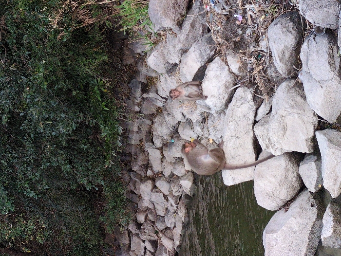 - "The image depicts two monkeys on a rocky bank beside a body of water in Tiruvannamalai, India" by FM-M0G9X2, licensed under CC BY 4.0