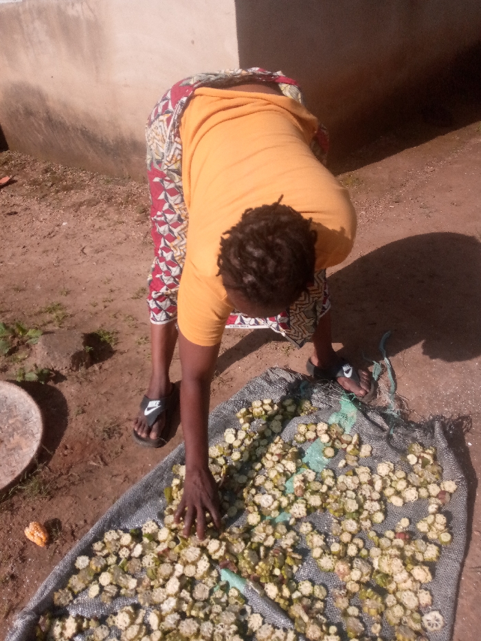- "In Agban, Nigeria, an overhead view captures a woman bent forward over a dark, coarsely woven mat laid directly on reddish-brown earth" by FM-LgEEK2, licensed under CC BY 4.0