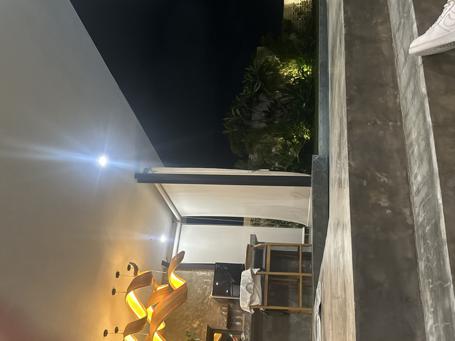 The scene depicts a nighttime view of an outdoor or semi-outdoor area within a property located in Tumbak Bayuh, Indonesia