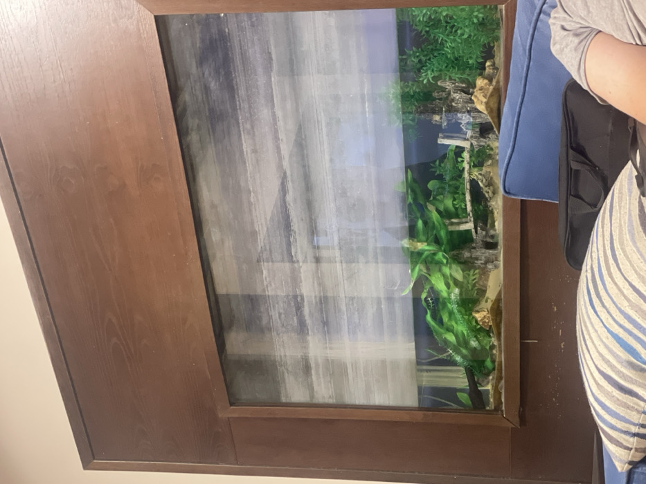 - "A brown-framed aquarium, viewed at an angle, features simulated wood grain on the frame" by FM-okz7B2, licensed under CC BY 4.0