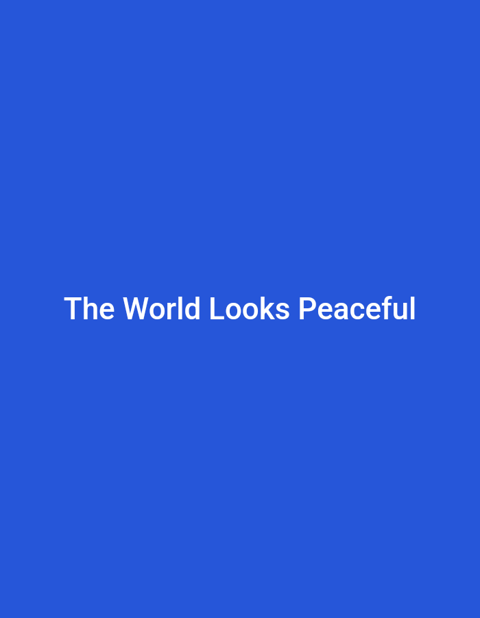 The image is a solid blue background with the text "The World Looks Peaceful" in white, centered in the bottom half of the image