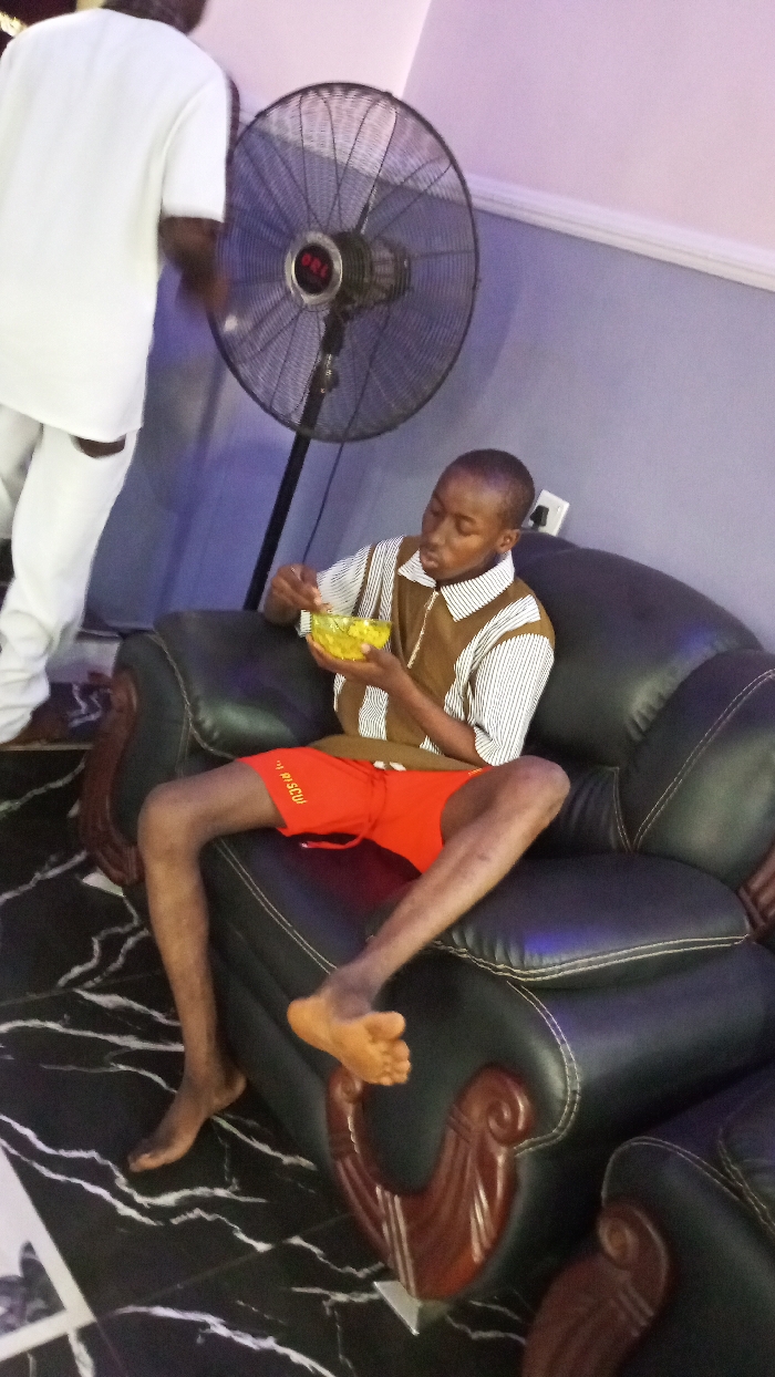 The scene is an interior room, likely a living area, located in Agburu Uke, Nigeria
