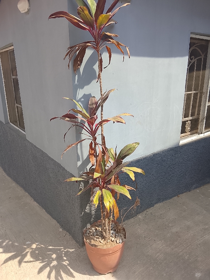 - "An outdoor scene in Nyanya, Nigeria, displays a tall, multi-stemmed plant in a reddish-brown plastic pot, positioned at the corner of a light grey building" by FM-DfPqX2, licensed under CC BY 4.0