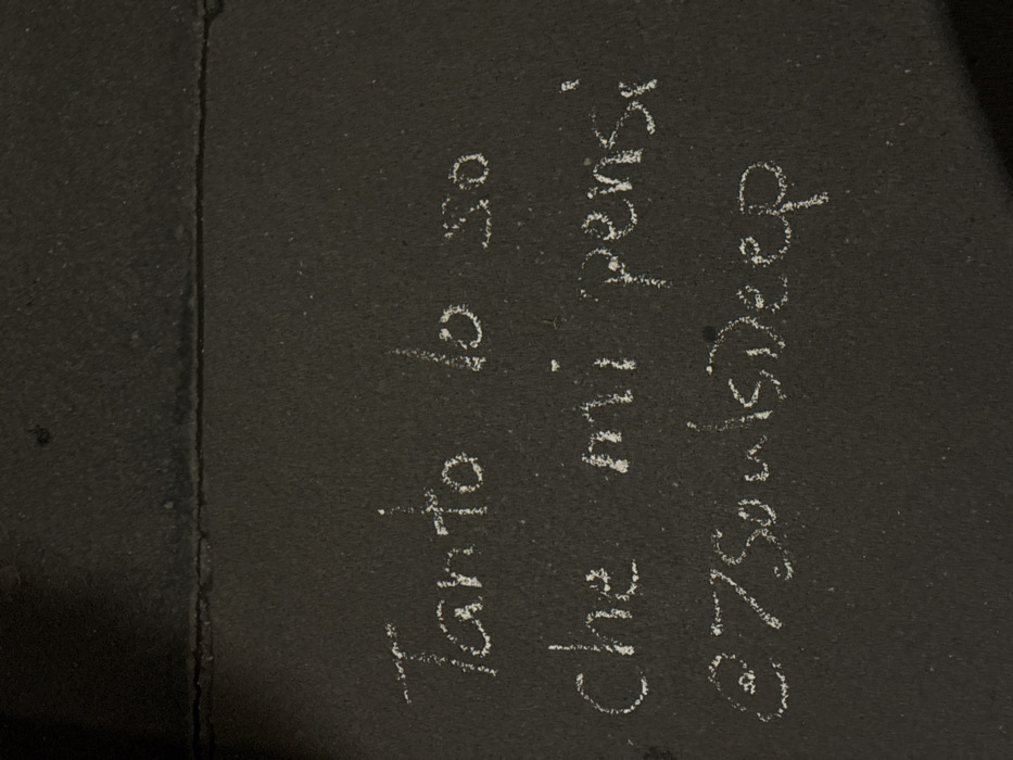 - "White chalk script on a textured dark surface reads, "Tanto lo so che mi pensi @375(s)andeep"" by FM-euyLP2, licensed under CC BY 4.0
