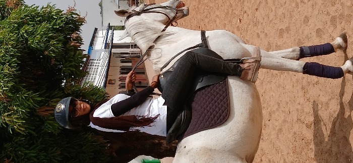 - "A female individual is depicted seated on a white horse within a sandy equestrian environment in Hayin Banki, Nigeria" by FM-DHzUs1, licensed under CC BY 4.0