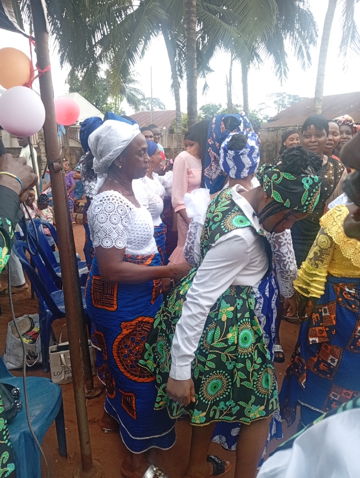 This image captures an outdoor daytime gathering of multiple adult females in Agbor, Nigeria