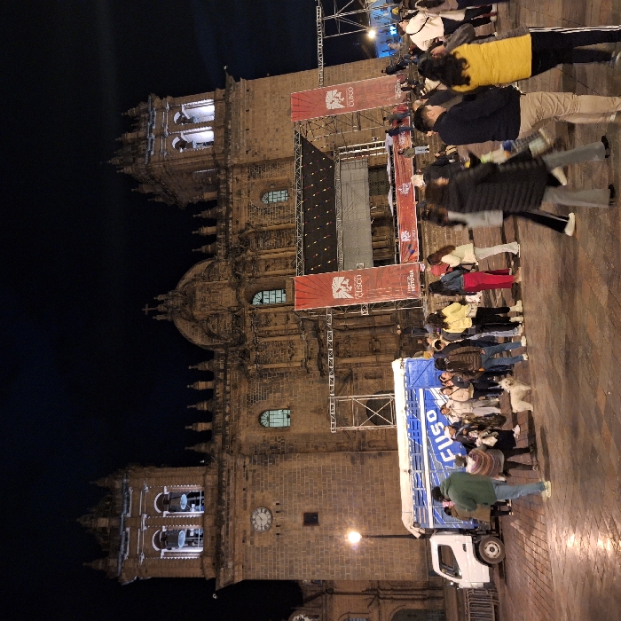 - "This nighttime image depicts the Plaza de Armas in Cuzco, Peru, with the Cathedral Basilica of the Assumption of the Virgin prominently centered in the background" by FM-b0Aw43, licensed under CC BY 4.0