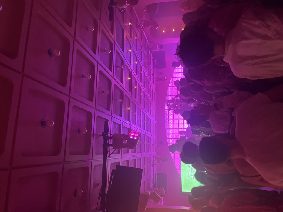 - "An interior image depicts a densely packed entertainment venue in Paris, France, illuminated predominantly by magenta and purple lighting" by FM-MYBQY2, licensed under CC BY 4.0