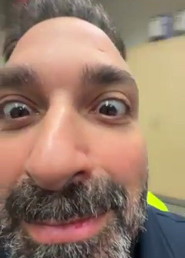 A close-up video shows a man with graying hair and a salt-and-pepper beard