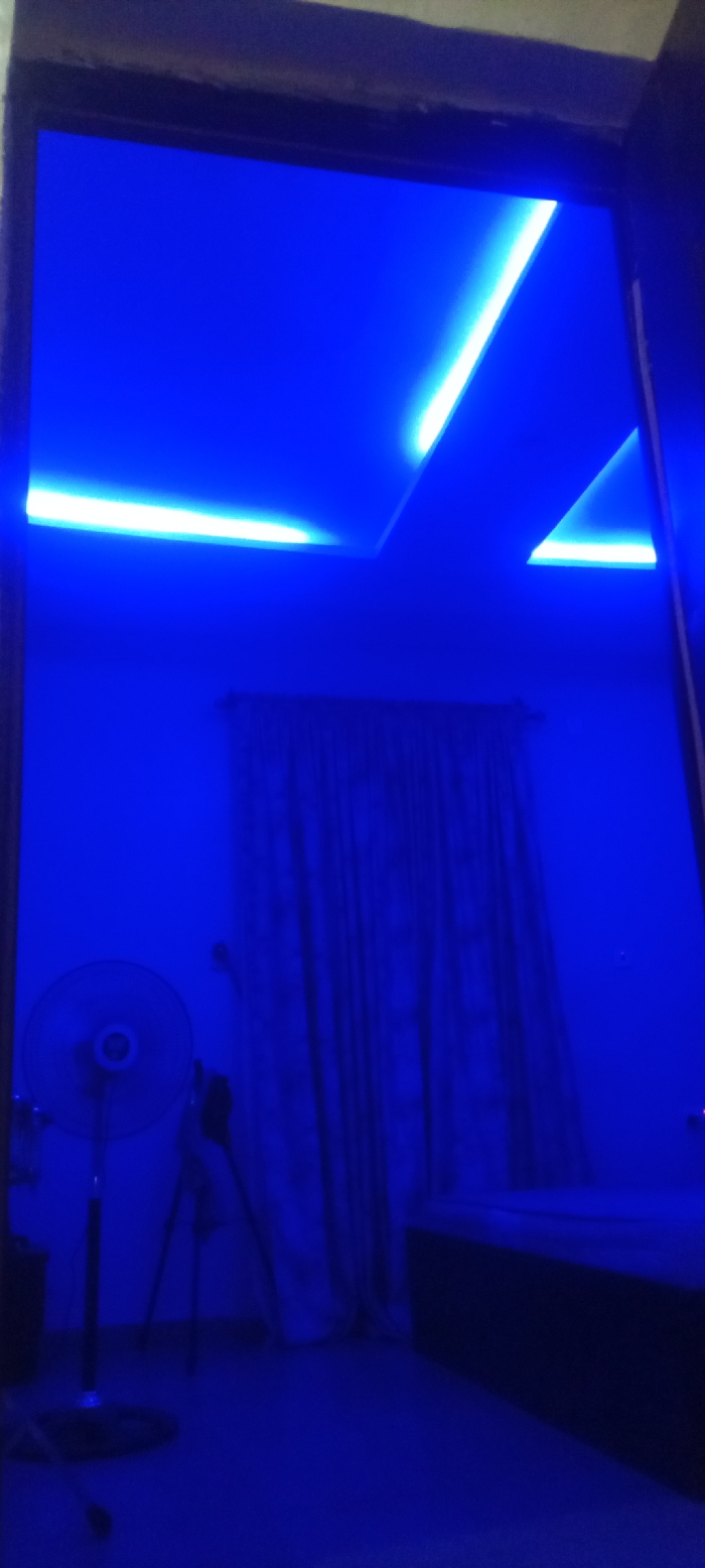 - "A room, viewed from the doorway, is illuminated in bright blue light emanating from recessed ceiling lights" by FM-PJyUA2, licensed under CC BY 4.0