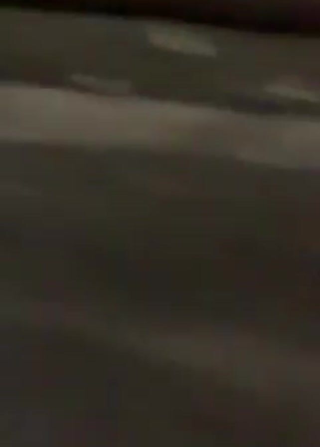 view of the floor inside what appears to be a bus. The floor has a dark speckled pattern. A dark metal rail moves into view along the upper part of the frame. Music plays in the background.