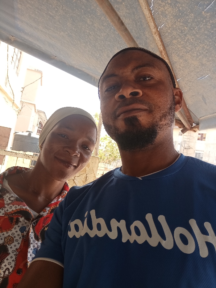 The image is a selfie taken in Sabon Gari West, Nigeria, featuring two individuals
