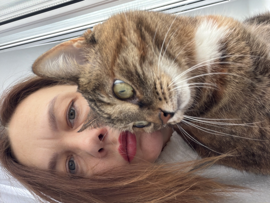 - "An adult female and a tabby cat are depicted in a close-up, indoor scene within the city of Chaikovsky, Russia" by FM-82K7o1, licensed under CC BY 4.0
