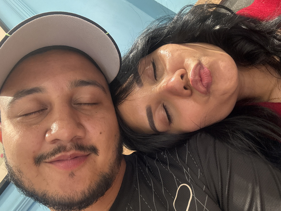 The image captures two individuals, an adult male and an adult female, in a close-up, diagonal composition in South Dumdum, India