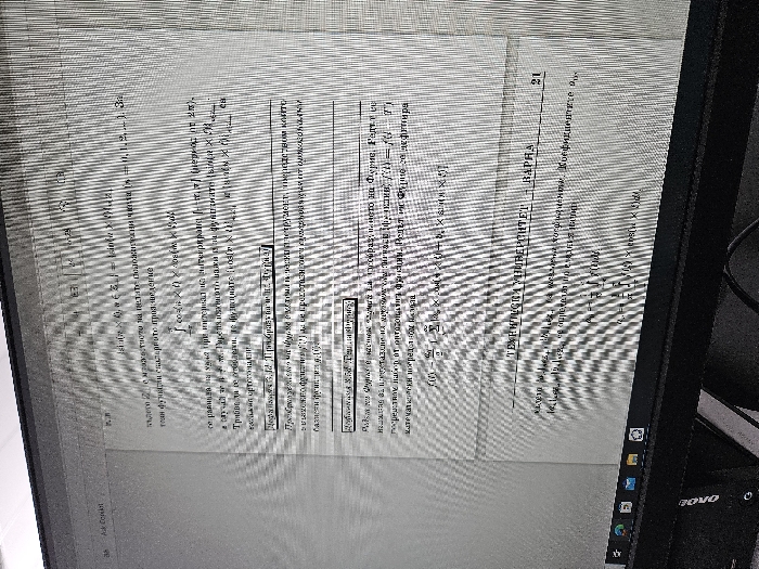 The image displays a close-up, angled view of a computer monitor exhibiting a digital document. The screen shows a prominent moiré pattern. The document content consists of text and mathematical formulas, including integrals and series, written in Bulgarian. Specifically, near the bottom of the visible document, the text "ТЕХНИЧЕСКИ УНИВЕРСИТЕТ - ВАРНА" (Technical University - Varna) is clearly identifiable, along with the page number "21". The lower bezel of the monitor is visible, featuring a portion of a Windows taskbar with several application icons. A black, indistinct object, possibly the base of a laptop or an external device, is partially visible at the bottom edge of the frame, positioned in front of the monitor. No individuals, actions, or interactions are present in the scene. The location is Varna, Bulgaria, as indicated by the text on the screen.