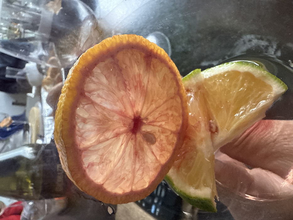 - "A translucent slice of red-fleshed citrus fruit, possibly grapefruit, dominates the frame" by FM-gtkvt2, licensed under CC BY 4.0