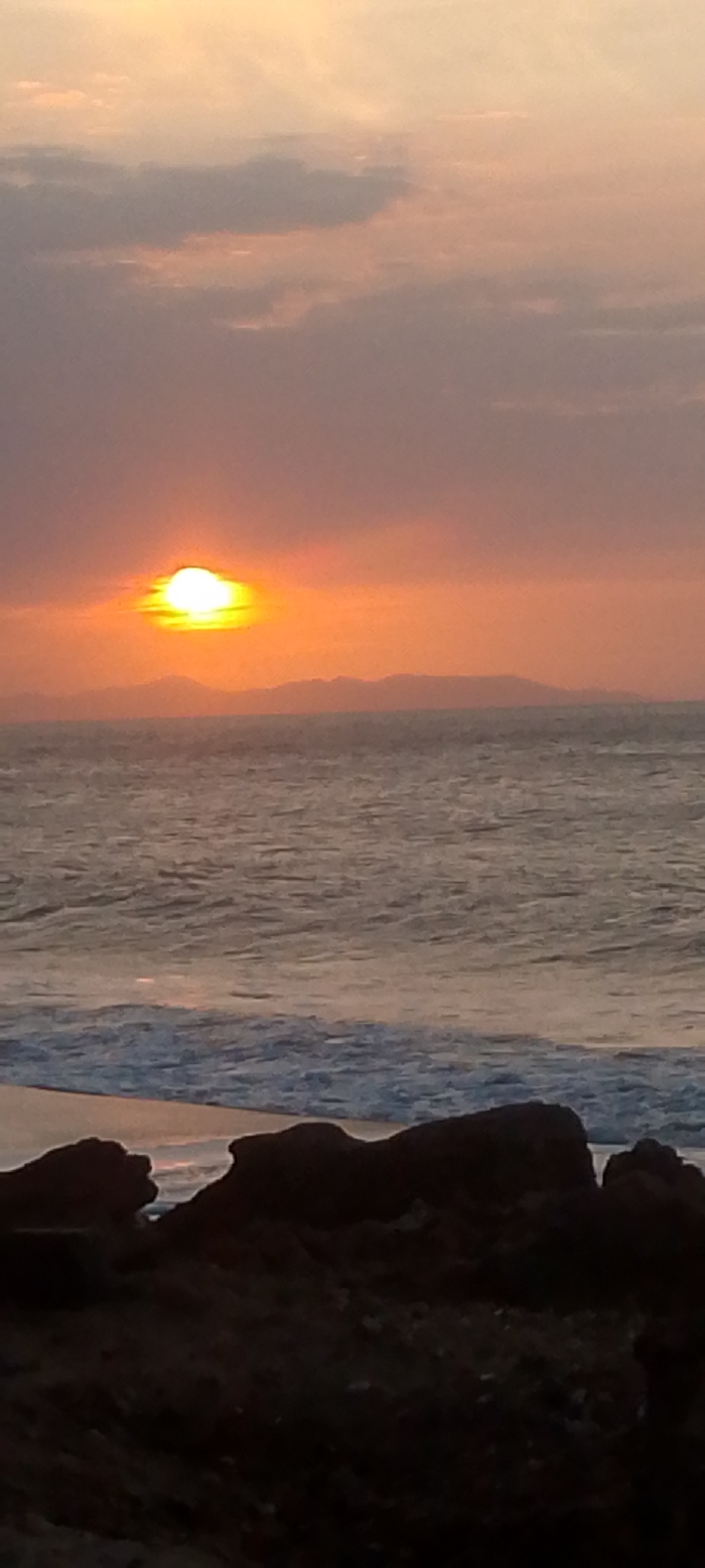 This image depicts a sunset over the ocean in Juan Griego, Venezuela