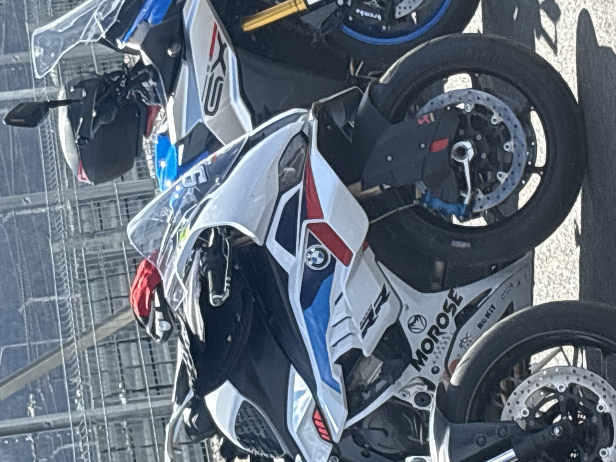 Two parked BMW S 1000 RR motorcycles are captured in a close-up shot
