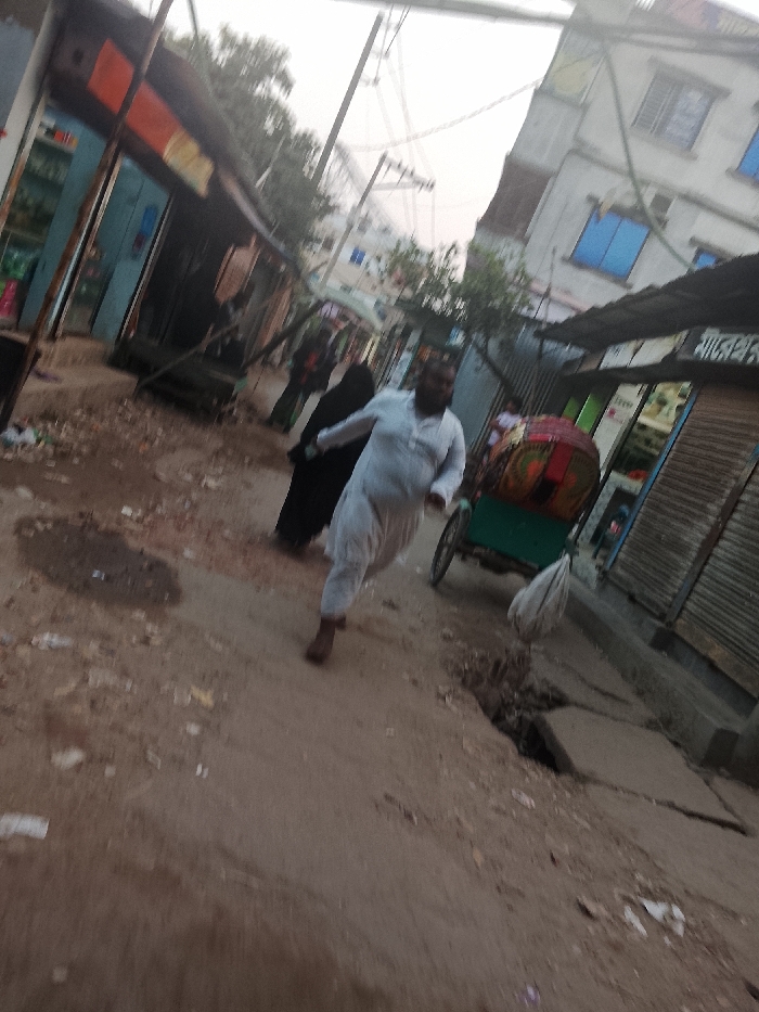 - "The image depicts an unpaved street scene in Tarabo, Bangladesh, populated by individuals and surrounded by structures under an overcast sky" by FM-nGXIE2, licensed under CC BY 4.0