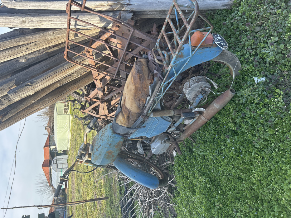 - "The scene in Dobrovnitsa, Bulgaria, displays an abandoned, heavily rusted, light blue motorcycle/moped positioned on a patch of green ground cover" by FM-LhklC2, licensed under CC BY 4.0