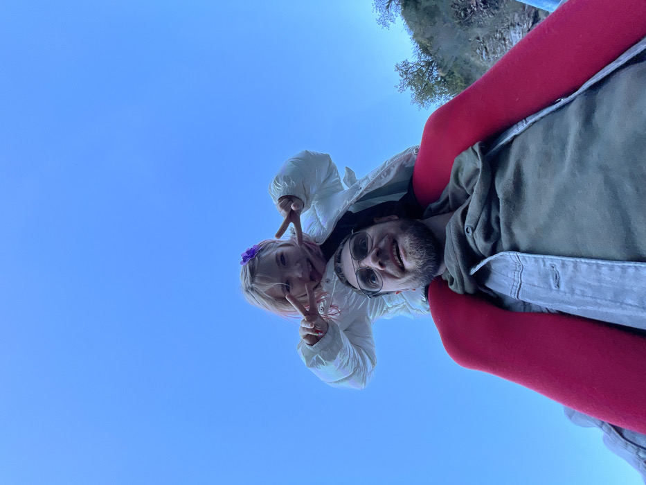 - "A man with a beard and sunglasses smiles while holding a young girl in his arms" by FM-oln9s2, licensed under CC BY 4.0