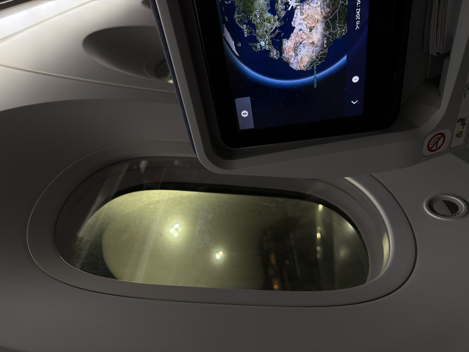 - "An airplane interior features a screen displaying a flight map with destinations like CDG, OGLI, and OILM highlighted" by FM-n65LK2, licensed under CC BY 4.0