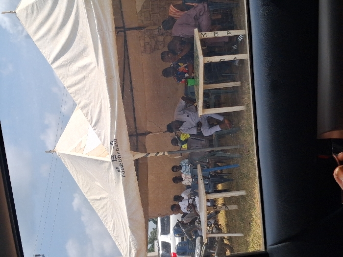The image, captured from within a vehicle, depicts an outdoor gathering in what is understood to be the city of Takum, Nigeria