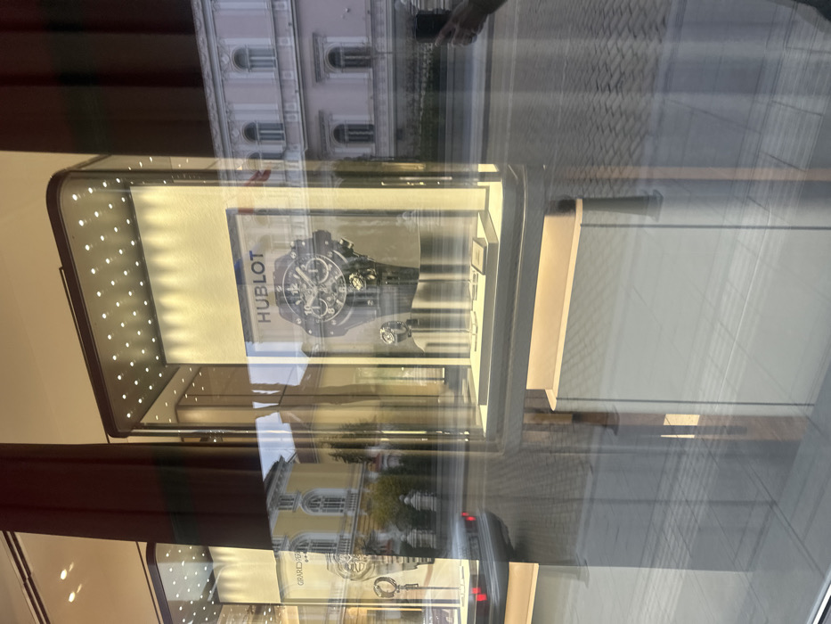 - "The image displays a detailed view through the reflective storefront window of a luxury watch boutique in Sofia, Bulgaria" by FM-hyPji2, licensed under CC BY 4.0