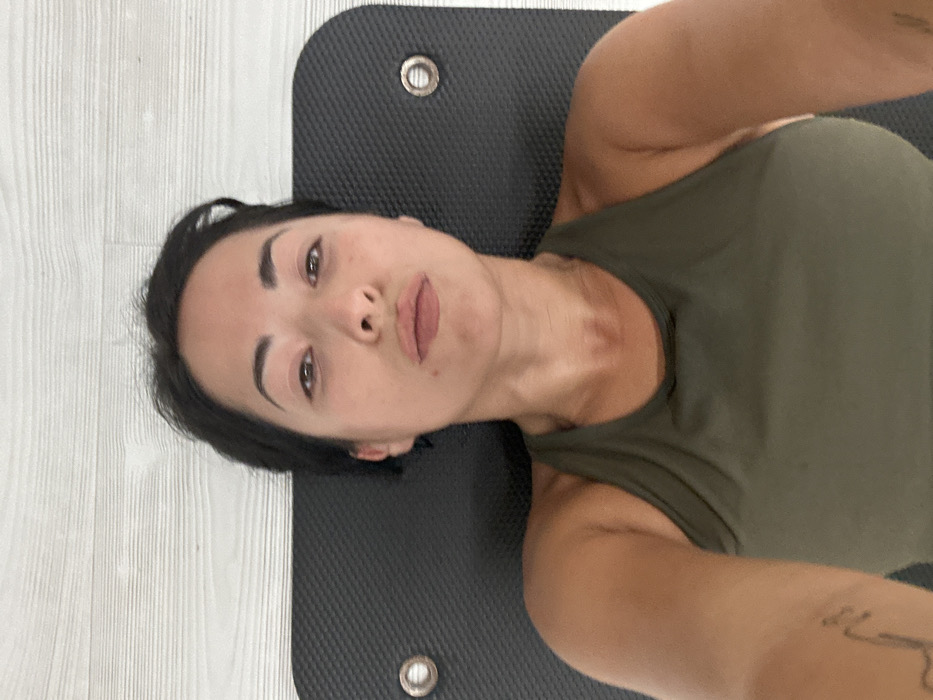 - "A female individual is shown lying supine on a black exercise mat, facing directly upwards towards the camera" by FM-3gpmV2, licensed under CC BY 4.0