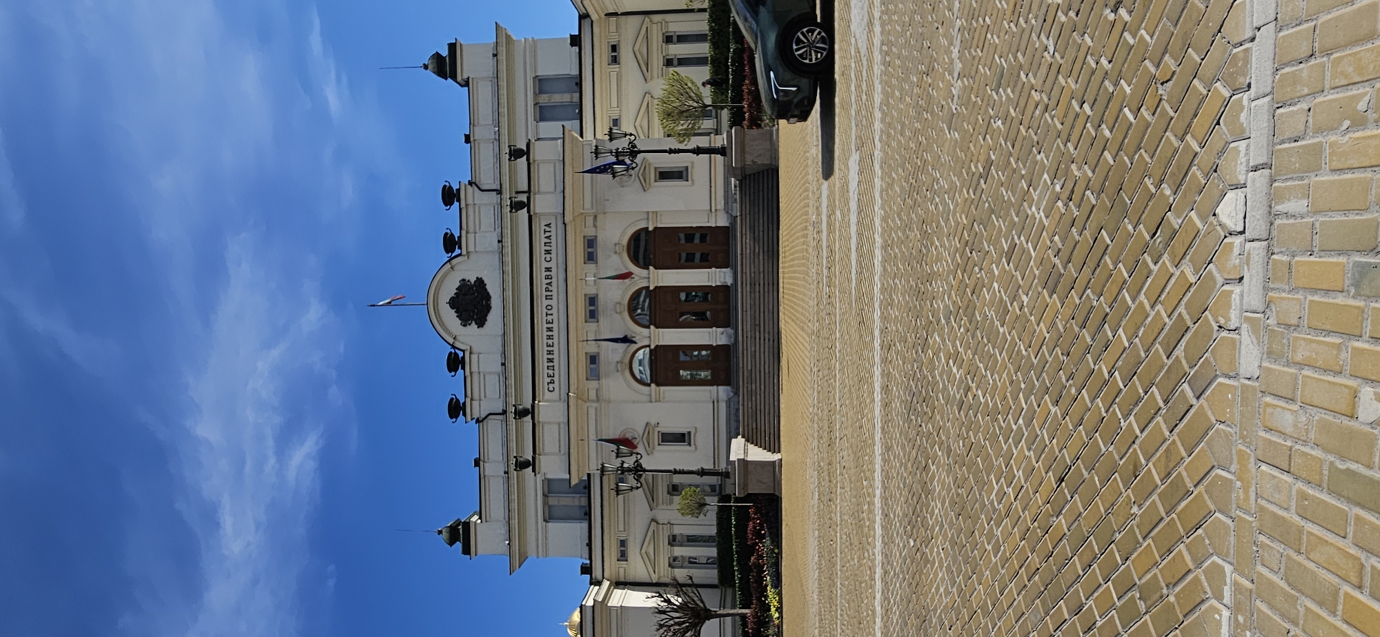 - "The image captures the National Assembly of Bulgaria in Sofia, a grand, white, multi-tiered building with ornate details such as flags and architectural accents" by FM-zxmE43, licensed under CC BY 4.0