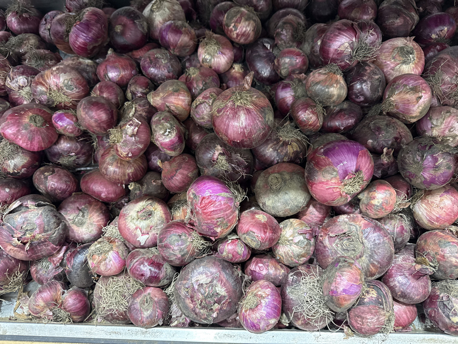 - "This image captures a dense, overhead view of a large quantity of red onions piled within a container, likely a market stall or storage bin, in Ilado, Nigeria" by FM-Aszrs1, licensed under CC BY 4.0