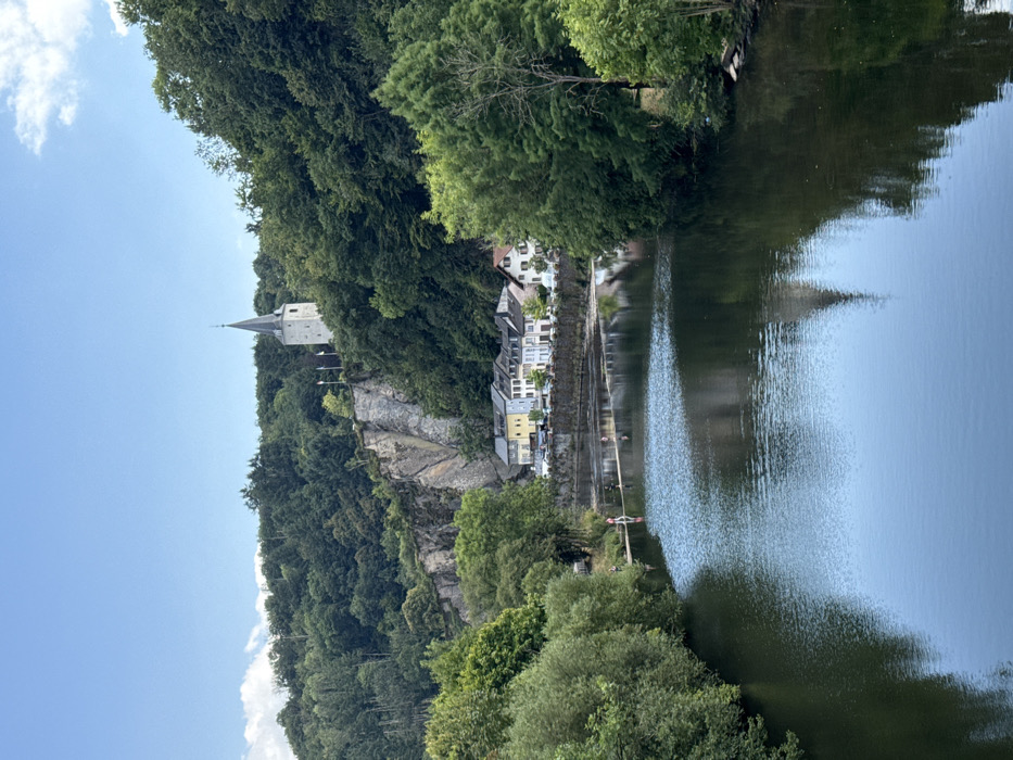 - "An outdoor, eye-level photograph depicts a scenic view of the Our River flowing through the city of Vianden, Luxembourg" by FM-euyLP2, licensed under CC BY 4.0
