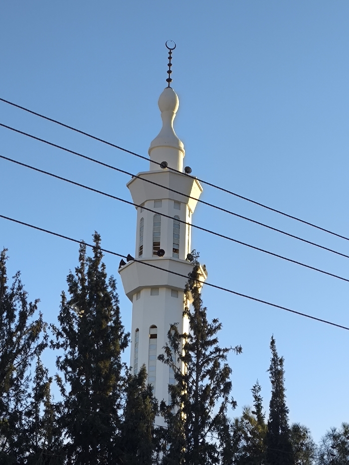 - "A white minaret, situated in Jirud, Syria, dominates the central and upper portions of the image, set against a clear blue sky" by FM-KeD0c2, licensed under CC BY 4.0