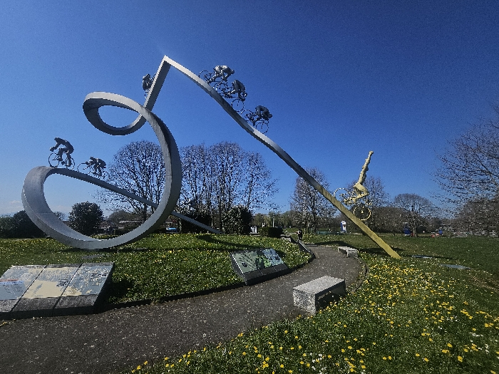 - "This image depicts the "Passage du Tour de France" monument in Ger, France, under a clear blue sky" by FM-bCw3N2, licensed under CC BY 4.0