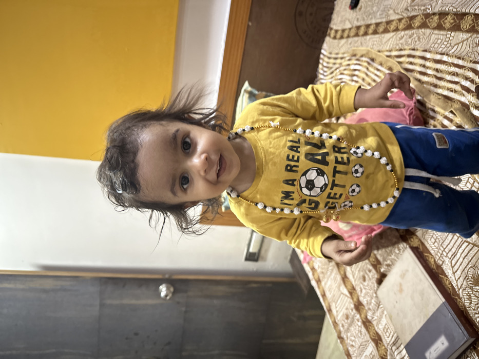 - "An indoor photograph from Shahapur, India, depicts a young child, approximately a toddler, standing centrally and facing the camera with a slight smile" by FM-n6yWE2, licensed under CC BY 4.0