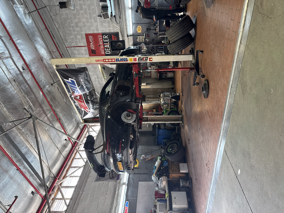 The image depicts an interior scene of an automotive repair shop in Azor, Israel