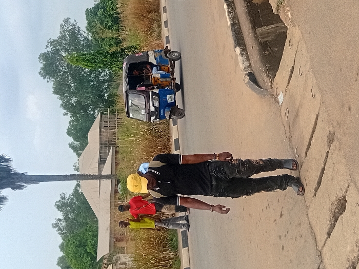 The image portrays an outdoor street scene in Ukukwa, Nigeria, under an overcast sky
