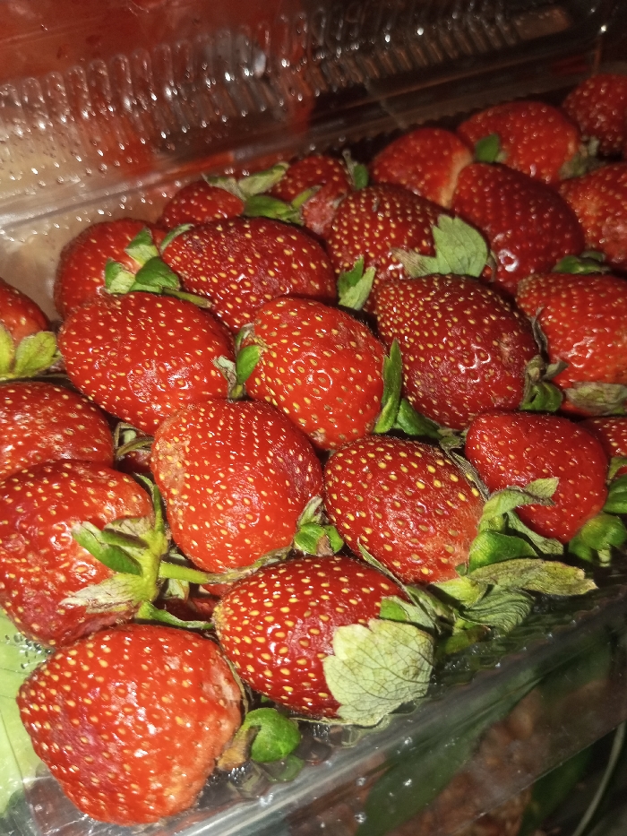 - "A clear plastic container brims with fresh strawberries, their vibrant red skin dotted with yellow seeds" by FM-3YrlQ2, licensed under CC BY 4.0