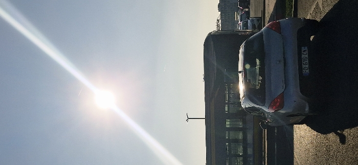 - "The image displays an outdoor scene in Vendin-le-Vieil, France, under a clear sky with a prominently visible sun in the upper left quadrant, generating a strong lens flare" by FM-uLzcF2, licensed under CC BY 4.0