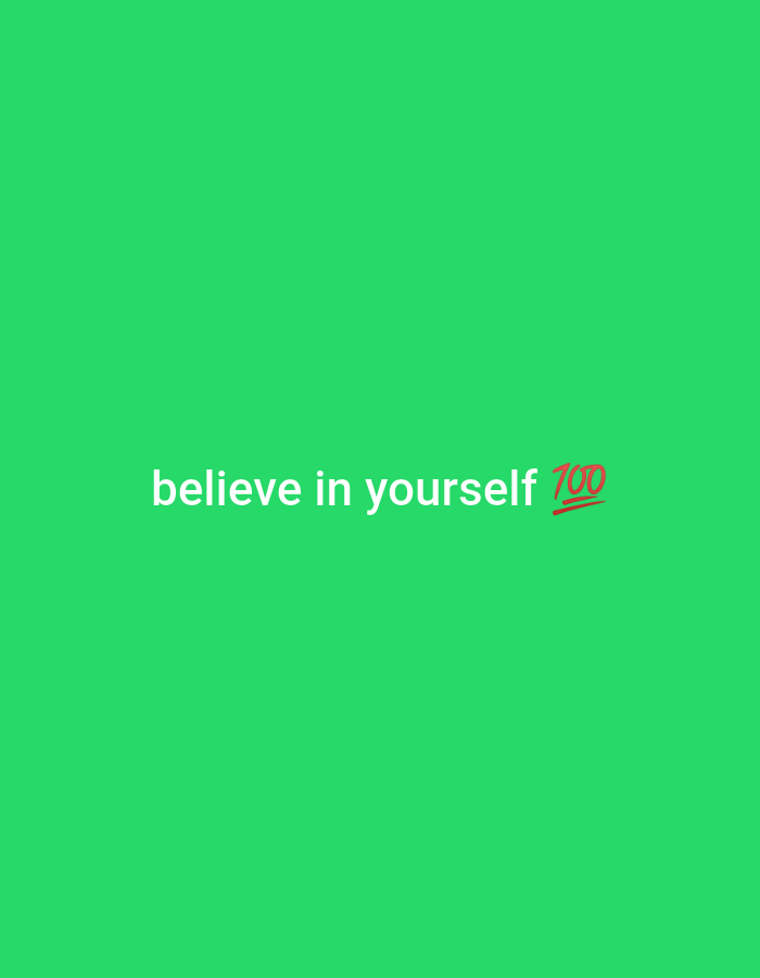 - "The image displays white text reading "believe in yourself" positioned horizontally centered and slightly below the vertical midpoint of a solid green background" by FM-s5WHS2, licensed under CC BY 4.0