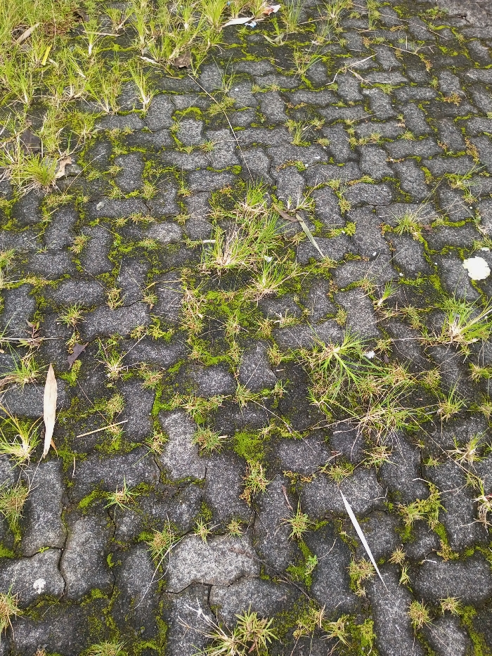 - "A textured gray brick pathway is overgrown with grass and moss" by FM-KXWYX2, licensed under CC BY 4.0