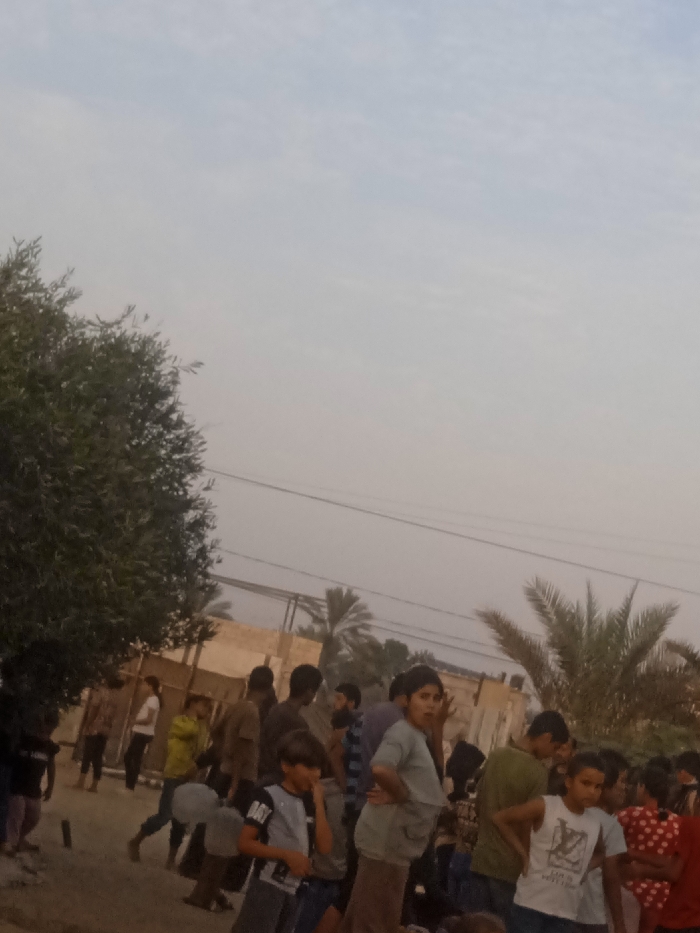 - "The image depicts an outdoor scene in Al-Mawasi, Unknown, featuring a crowd of approximately 20-30 individuals, predominantly children and adolescents, under a hazy, light grey sky" by FM-cV3b62, licensed under CC BY 4.0