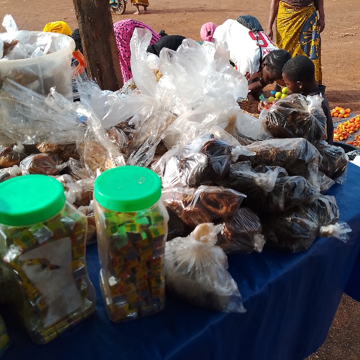 The image portrays an outdoor market stall in Oturkpo, Nigeria