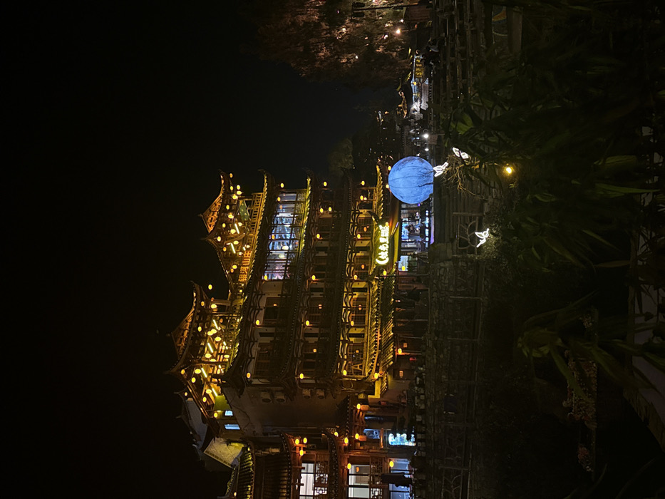 - "The image displays a nighttime scene in Furong, China, featuring a multi-story building constructed in traditional Chinese architectural style with multiple tiered, upturned eaves" by FM-HTgwN2, licensed under CC BY 4.0
