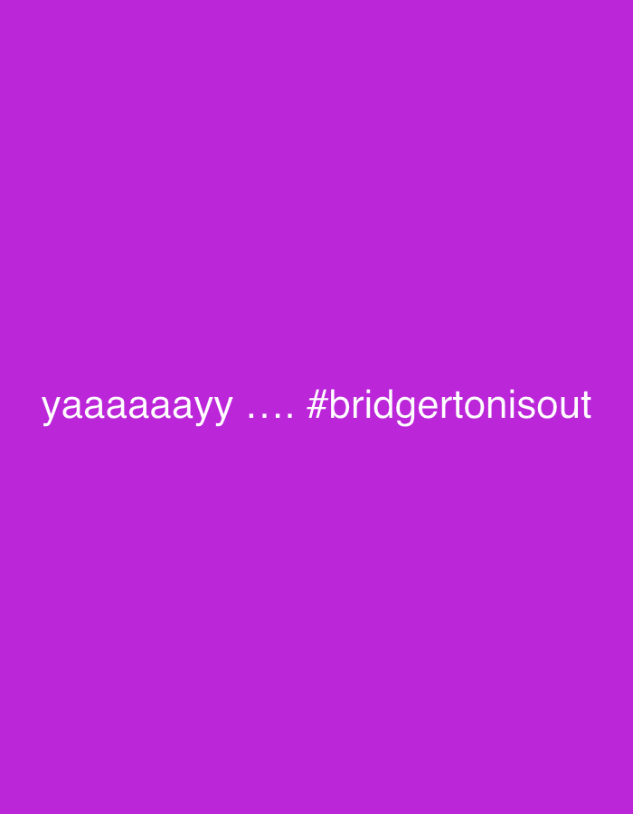 The scene, situated in Karum, Nigeria, is a digital graphic featuring a solid, uniform purple background. White text is centrally positioned in the lower section, displaying the phrase "yaaaaaaayy .... #bridgertonisout". No individuals, distinct objects, or specific environmental elements are depicted within the image beyond the colored background and the text.