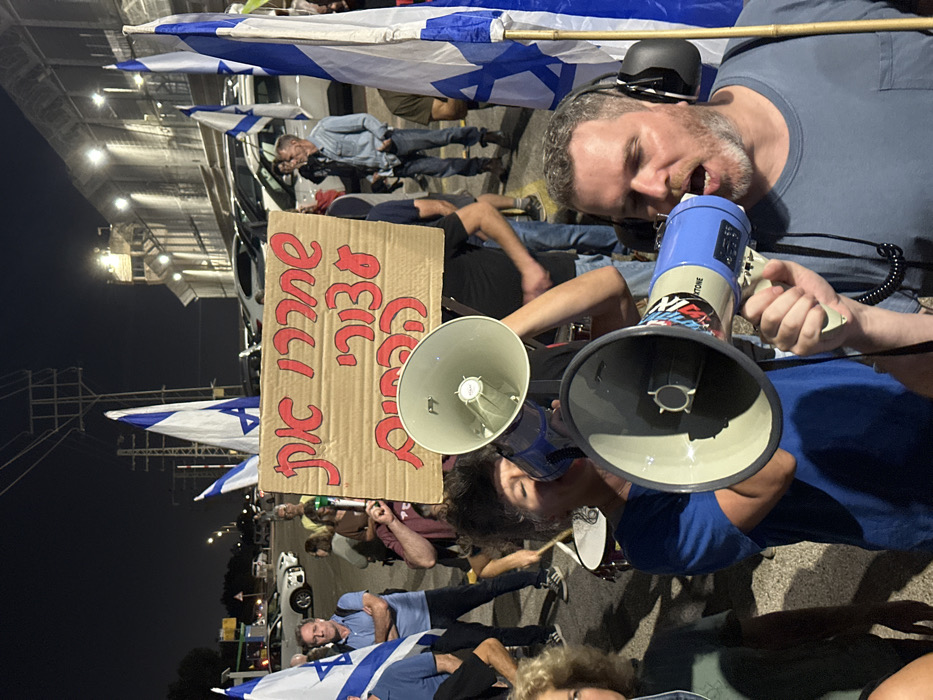 - "The image depicts a nighttime protest scene taking place outside Hadarim Prison, located in the Tel Mond area, Israel" by FM-RIphO2, licensed under CC BY 4.0