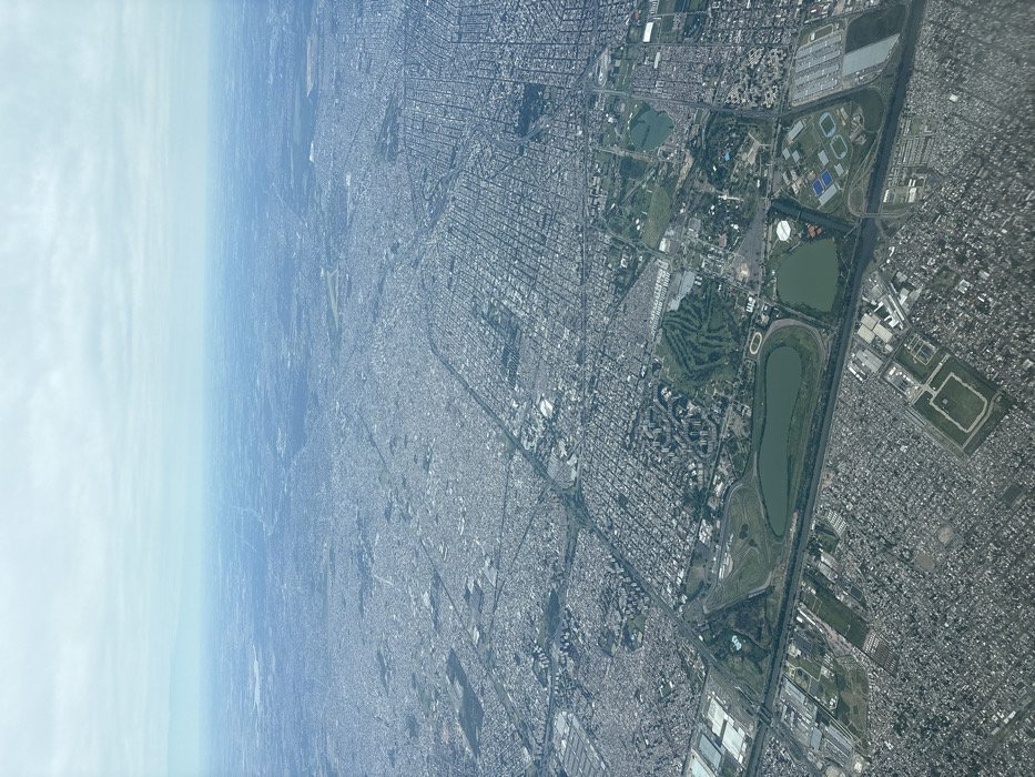 - "This image presents an aerial view of a densely populated urban landscape under an overcast sky, observed from an elevated position, likely an aircraft on approach to or departure from Aeropuerto Internacional Ezeiza, Argentina, looking northeast towards the city of Buenos Aires" by FM-DE9ba2, licensed under CC BY 4.0