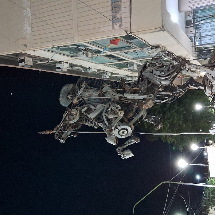 - "The image displays a nighttime urban scene in San Fernando del Valle de Catamarca, Argentina, centered on a large equestrian sculpture constructed from salvaged metal components" by FM-6OP392, licensed under CC BY 4.0