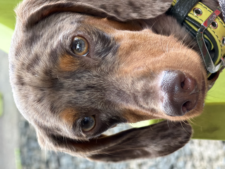 - "A close-up captures a dachshund's face tilted towards the camera" by FM-7gWCF3, licensed under CC BY 4.0